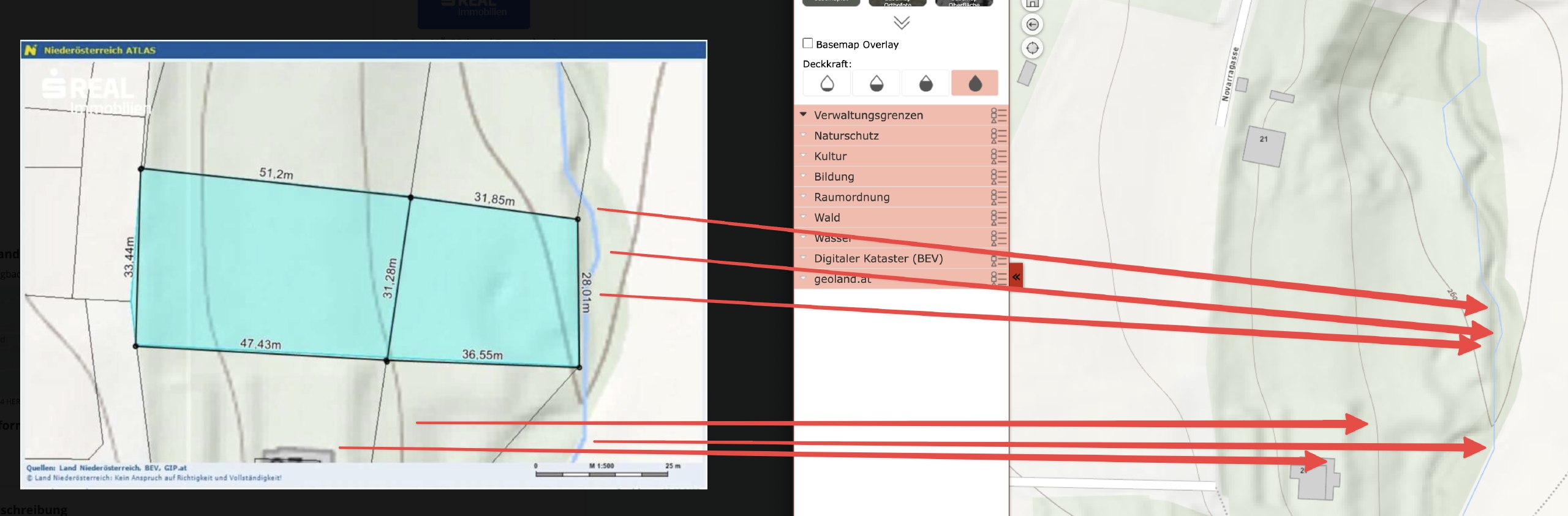 Living in Vienna but searching for plots about 45 minutes away made scheduling viewings a challenge. Even if we clustered appointments, the process was still time-intensive and stressful. In many cases, just seeing the village was often enough to eliminate a lot: highway noise, noticeable power lines, or a steep slope could instantly rule it out.